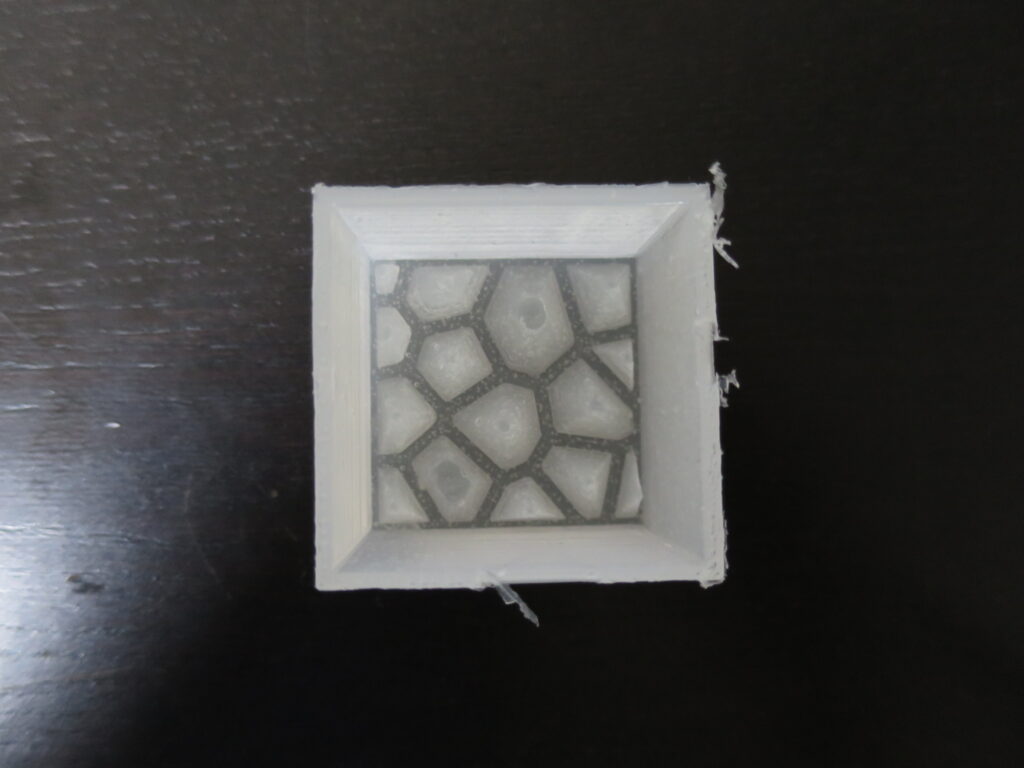 シリコンが型枠にぴったりと張り付き、はがすのがとても大変だったため、型枠を取り外しやすくする工夫があったほうが良いかもしれません。